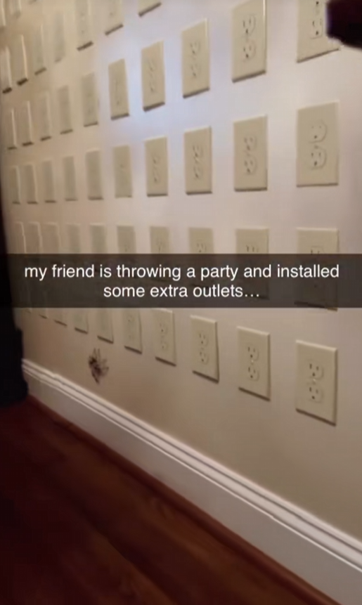 Tim on the wall with a million outlets on the wall (Jan 5 2025)