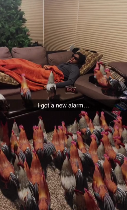 Tim on top of a clock with my new alarm clock (Jan 27 2025)