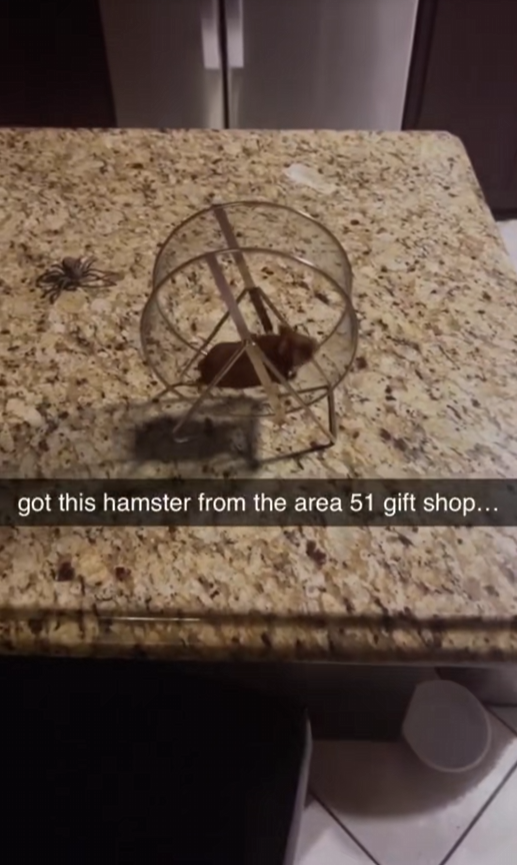 Tim chilling on the counter and disappears after a hamster runs lightspeed on a hamster wheel (Feb 1 2025)