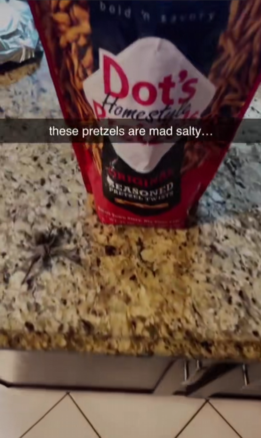 Tim chilling on the counter when the pretzels were salty (Feb 2 2025)