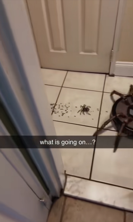 Tim running away from the spider Roomba (Feb 6 2025)