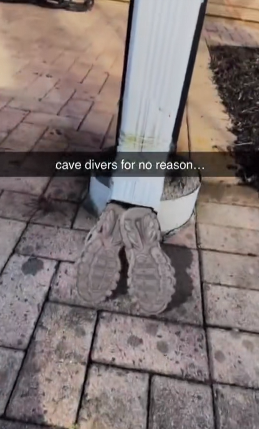 Tim in the background while my cousin cavedives in a gutter (Feb 17 2025)