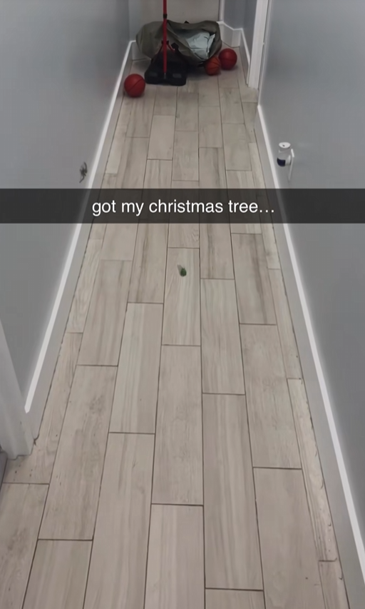 Tim chilling on the wall with a Christmas tree in the background (Dec 6 2024)