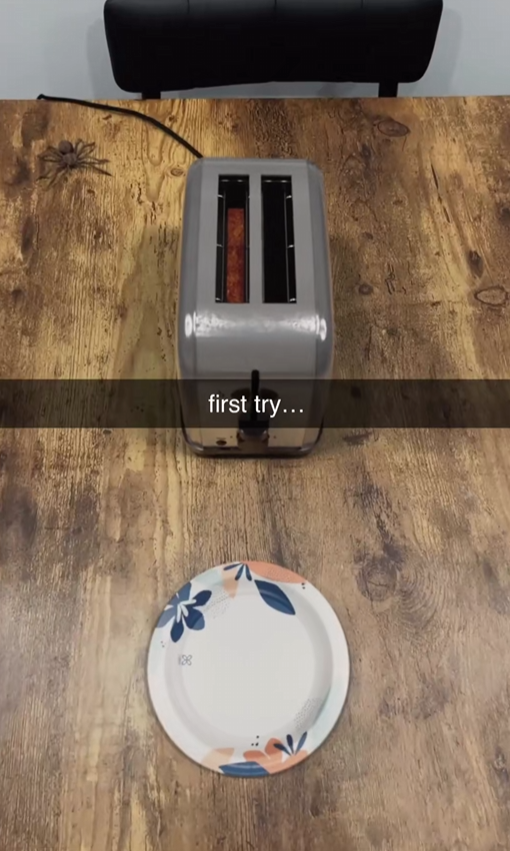 Tim chilling on the table with toast all over the floor (Dec 9 2024)